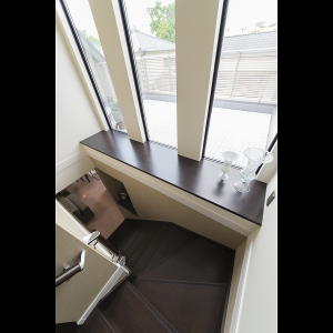 「明るく自分らしい家が欲しい」と思っていた施工主の理想が叶った家です。最上階の勾配天井には、大きな窓が取り付けられています。太陽光に照らされながら、明るい食卓を囲めるのが◎。さまざまなテクスチャの壁を利用し、個性的な外観になっているのも特徴です。
